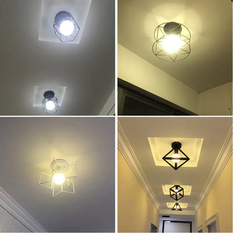 Vintage Black Iron Cage Ceiling Lamp